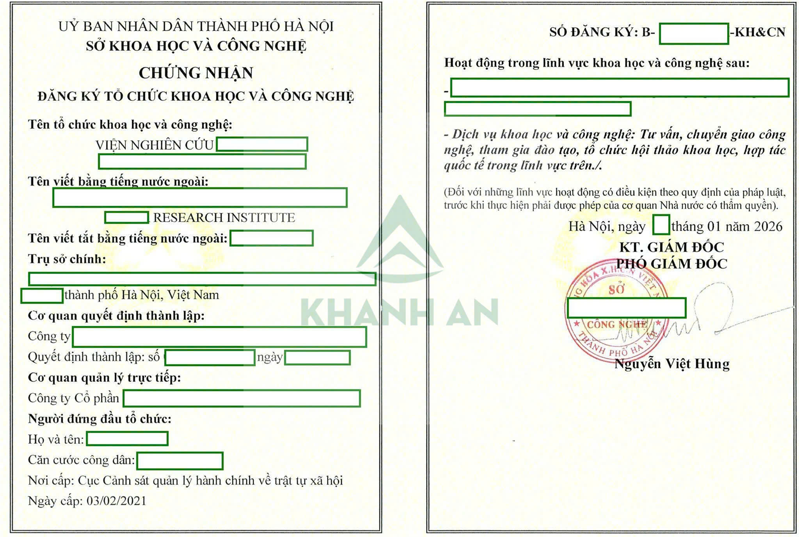 5. Dịch vụ thành lập Viện nghiên cứu khoa học công nghệ của Khánh An